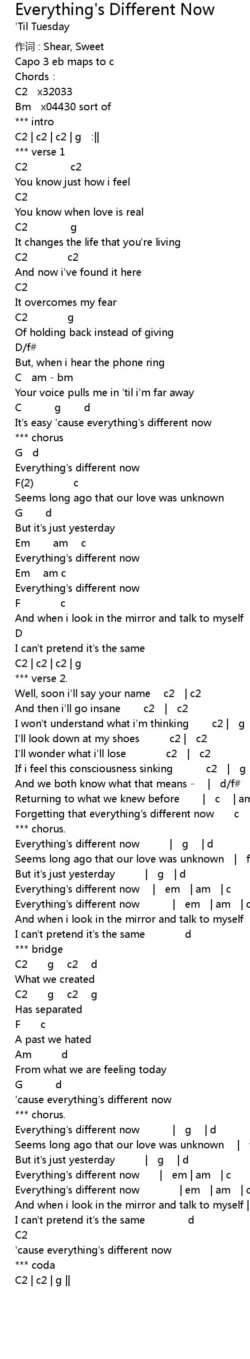 | Everything's different now | em | am | c | |