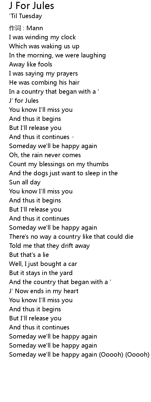 | Someday we' ll be happy again Ooooh Ooooh Ooooh Oh |