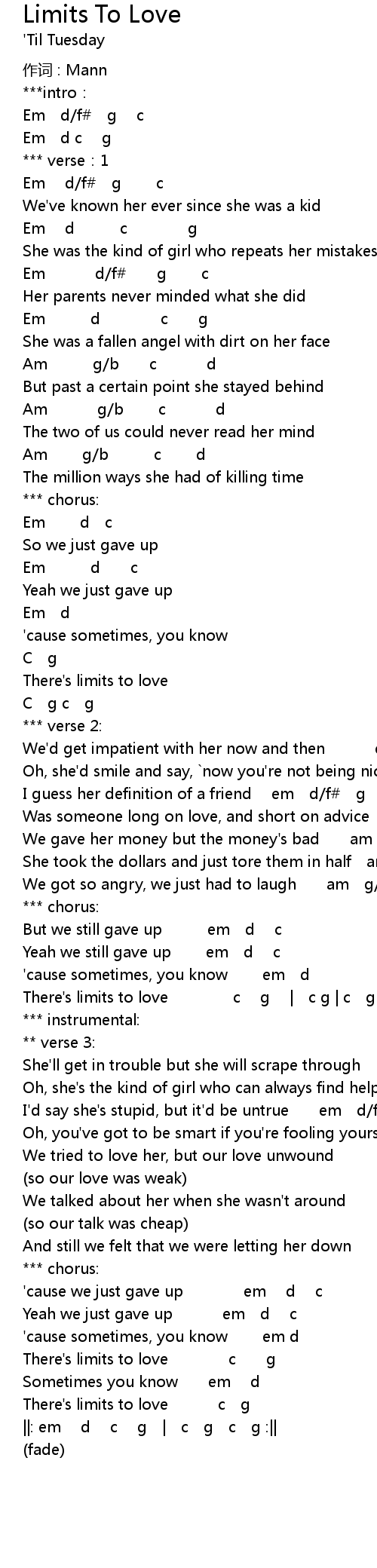 | There's limits to love c g | |