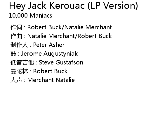 | 歌曲 | Hey Jack Kerouac (LP Version) |