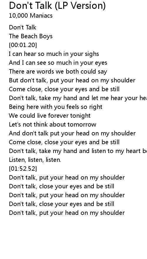 And don't talk put your head on my shoulder |