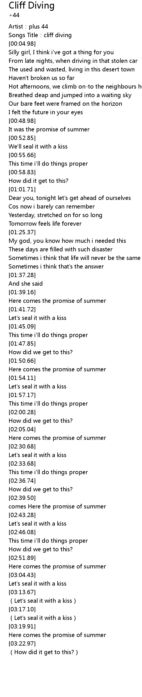 | [02:28.88] | Here comes the promise of summer |