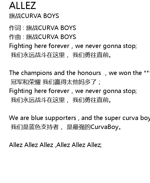 | 作词 : 旗战CURVA BOYS | |