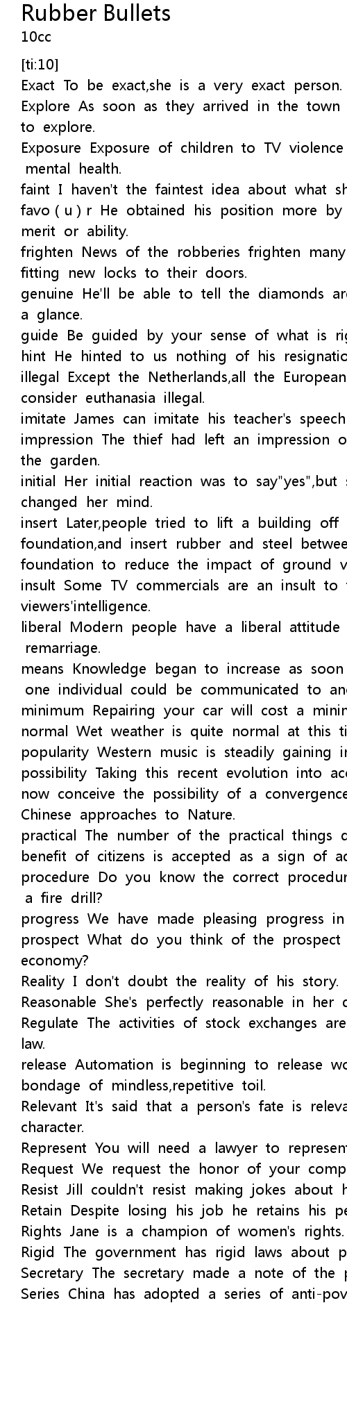| [00:08.494] | Exact To be exact,she is a very exact person. |