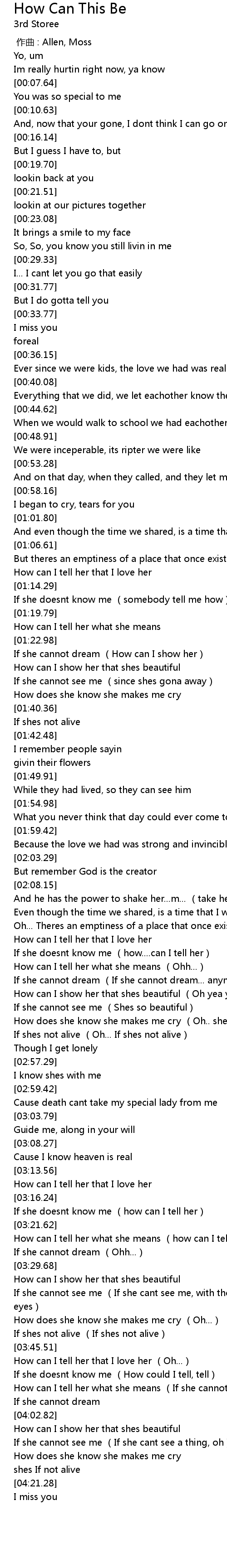 | [00:00.00] | zuò qǔ : Allen, Moss |