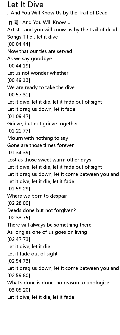 | [03:07.33] | Let it dive, let it die, let it fade |