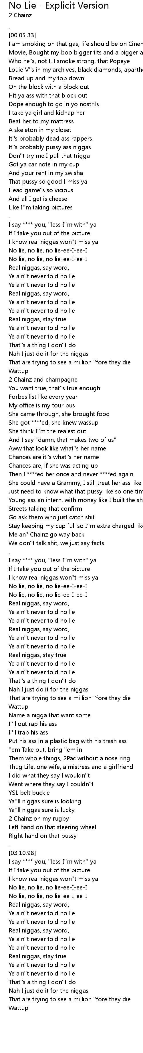 | [01:53.98] | Just need to know what that pussy like so one time it''s fine with me |