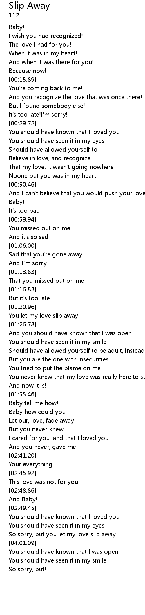 | [00:44.38] | That my love, it wasn't going nowhere |