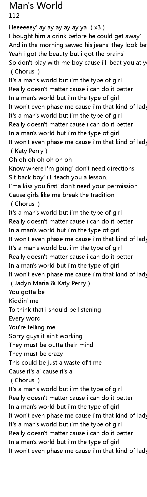 | [00:56.82] | It's a man's world but i'm the type of girl |