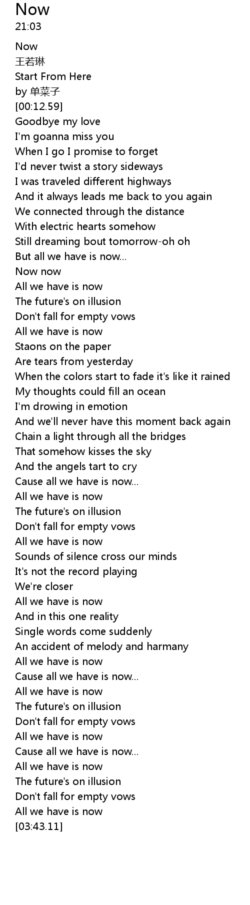 | [03:01.23] | All we have is now |