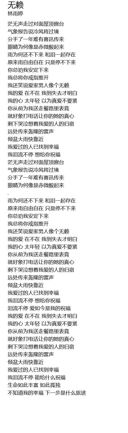 | [02:41.50] | 雨为何还不下来 和泪一起存在 |