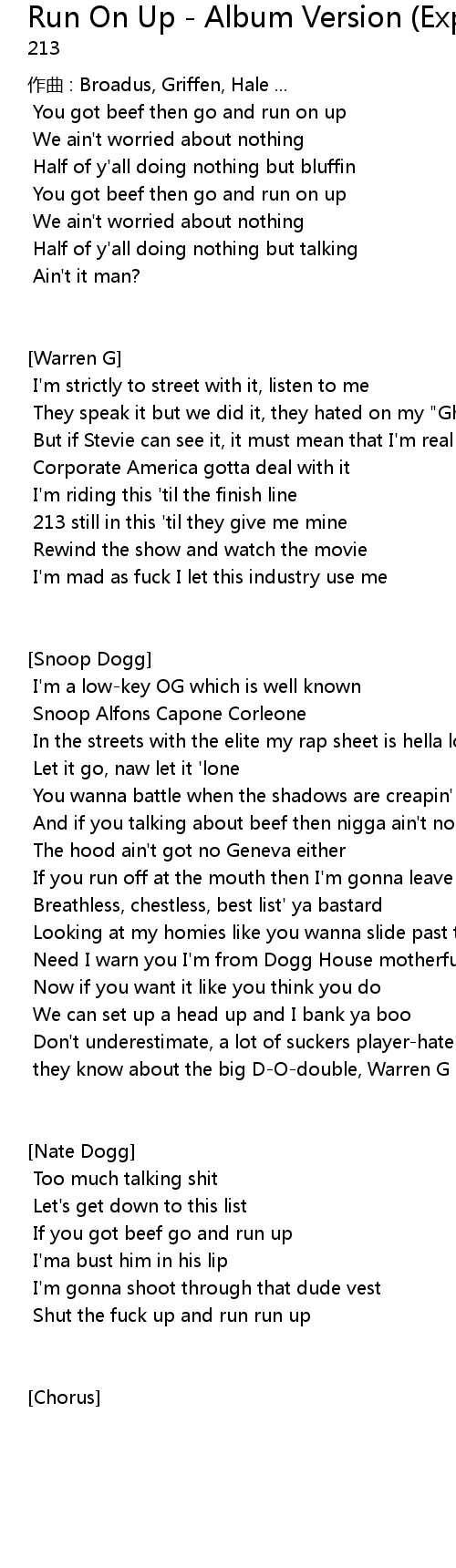 | 歌曲 | Run On Up - Album Version (Explicit) |