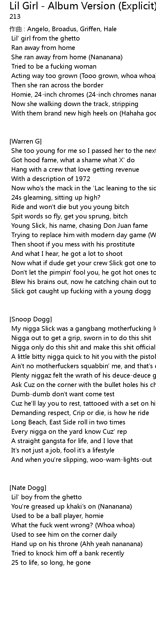 | 歌曲 | Lil Girl - Album Version (Explicit) |