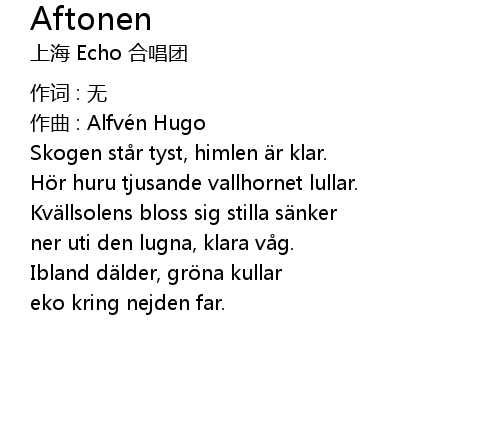 | 歌曲 | Aftonen |