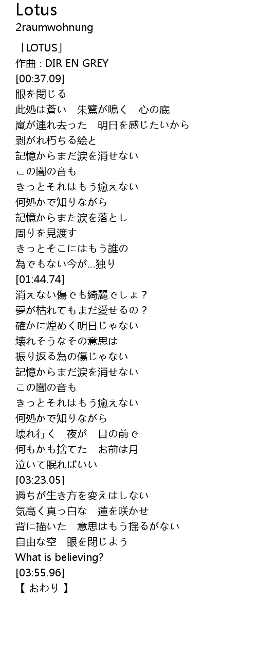 | [00:17.09] | zuò qǔ DIR EN GREY |