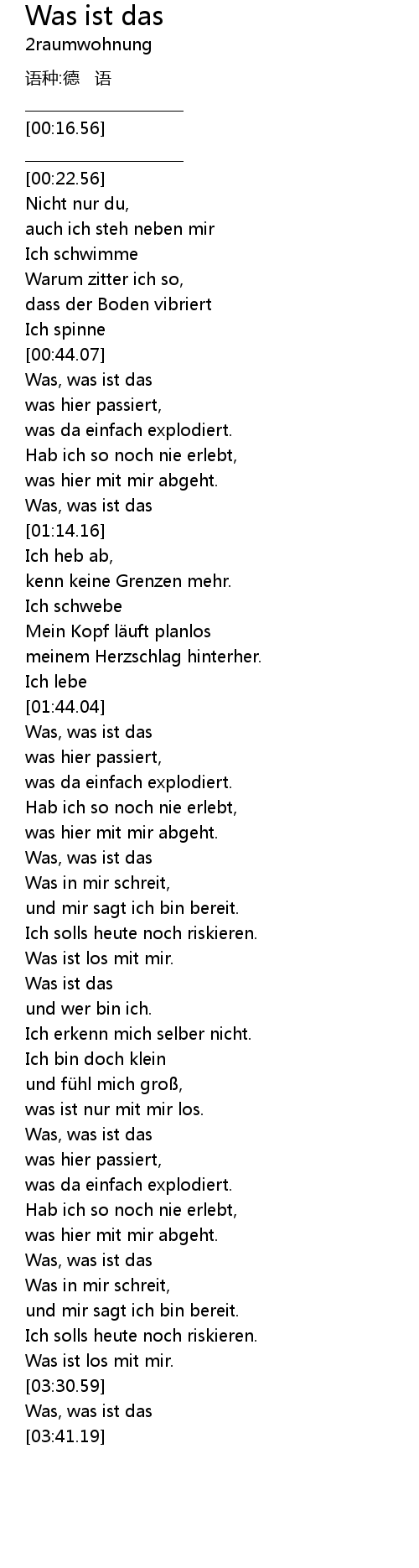| [01:46.71] | Was, was ist das |