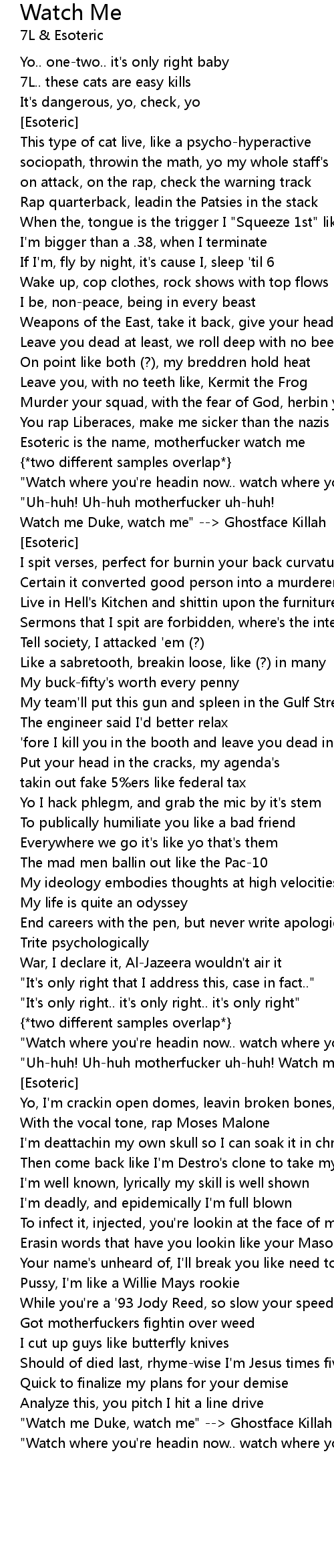 Esoteric is the name, motherfucker watch me |