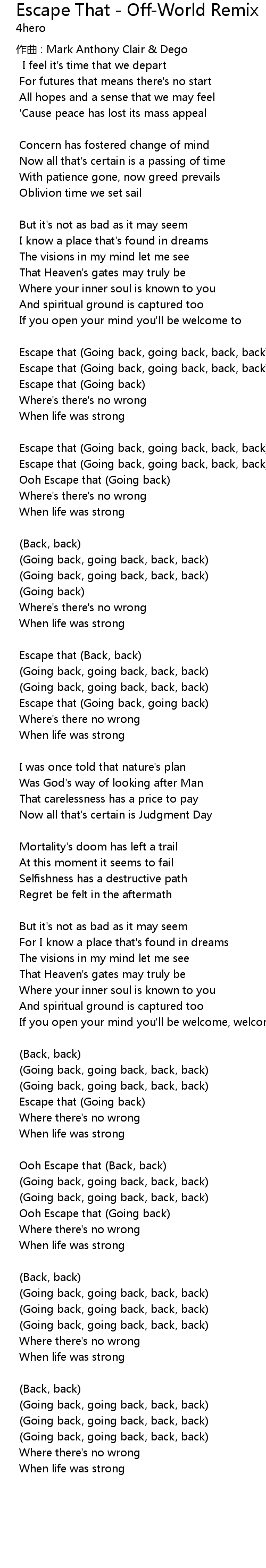 | 歌曲 | Escape That - Off-World Remix |