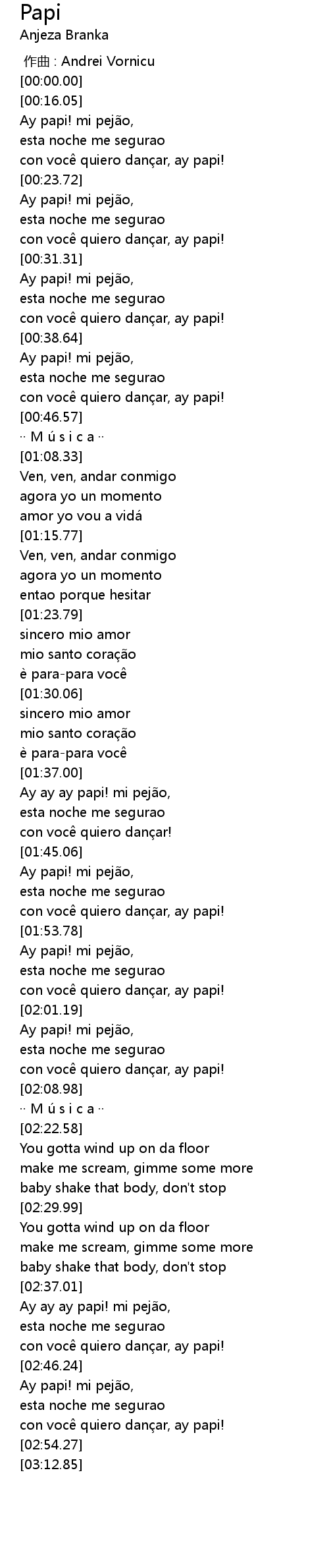 | [02:05.15] | con você quiero dançar, ay papi! |
