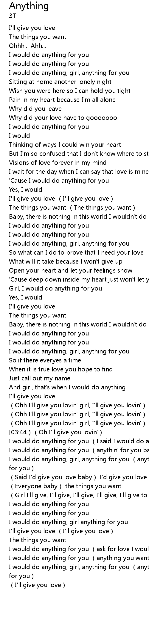 | [03:52] | I would do anything, girl, anything for you (anything girl, anything for you) |
