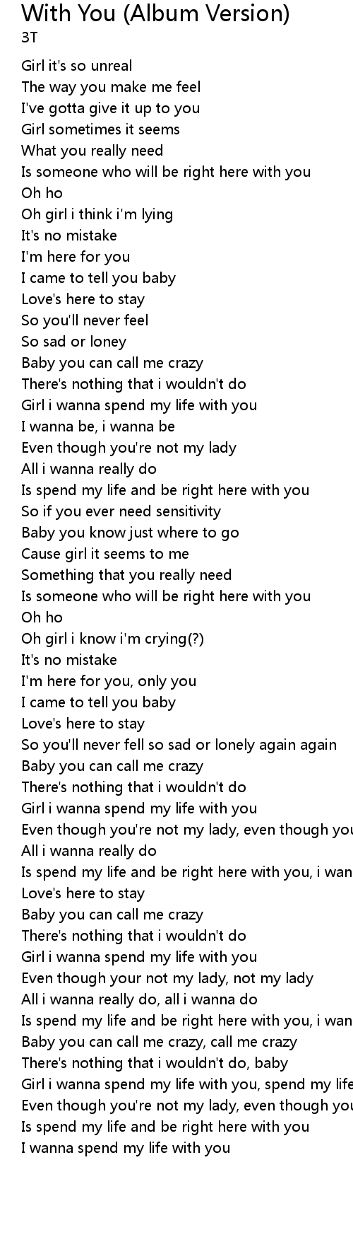 Is spend my life and be right here with you, i wanna spend my life with you |
