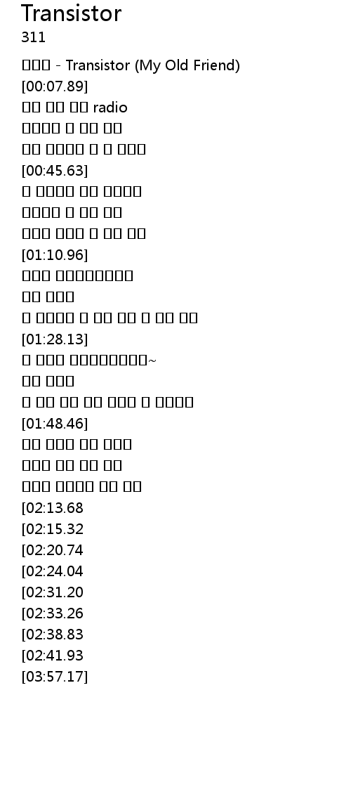 | [00:01.12] | 조성모 - Transistor (My Old Friend) |