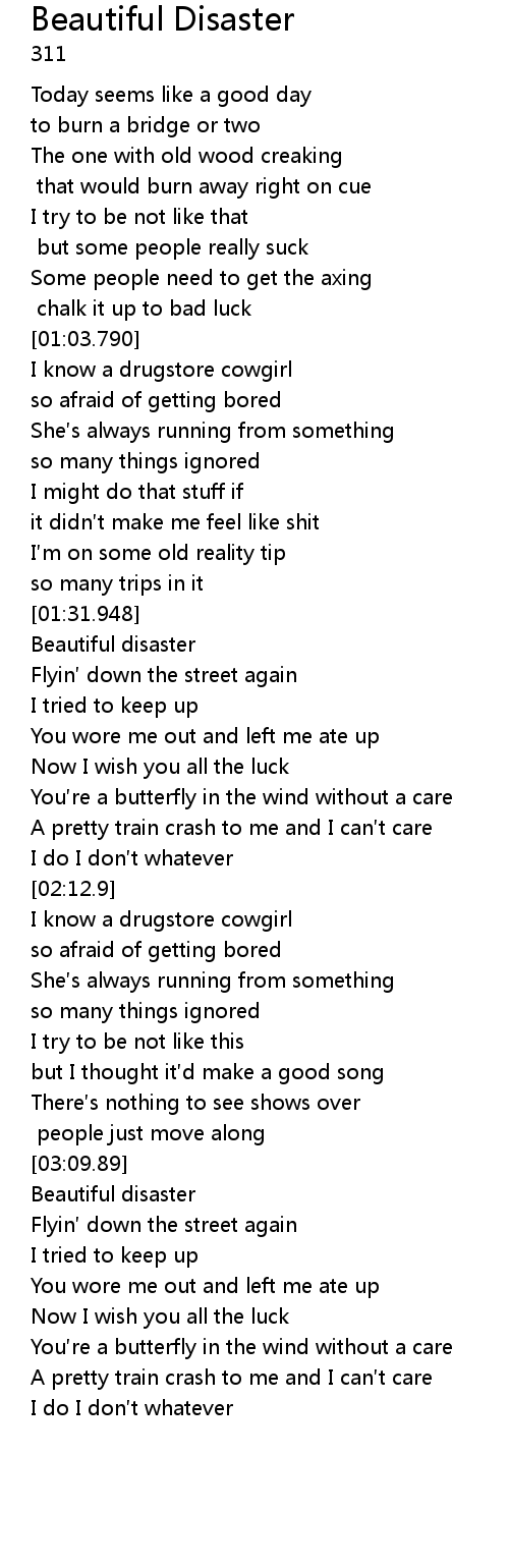 | [03:16.699] | Beautiful disaster |