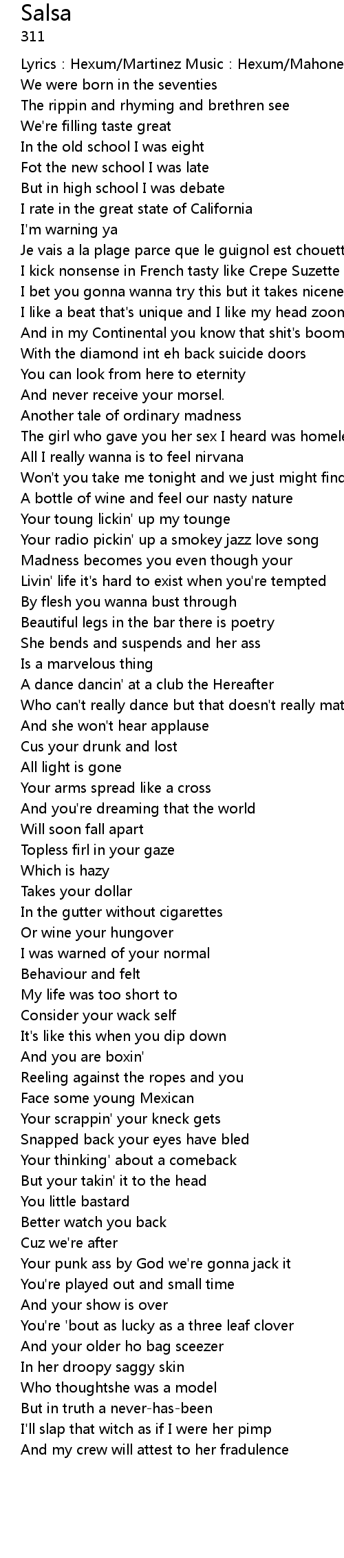 | Lyrics: Hexum Martinez Music: Hexum Mahoney Sexton | |