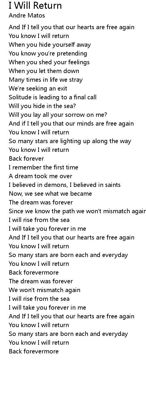 You know I will return |