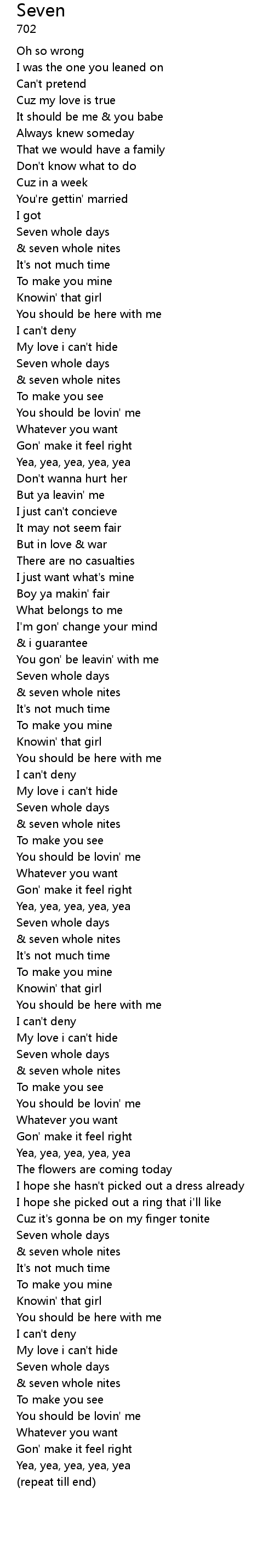 | Seven whole days | |