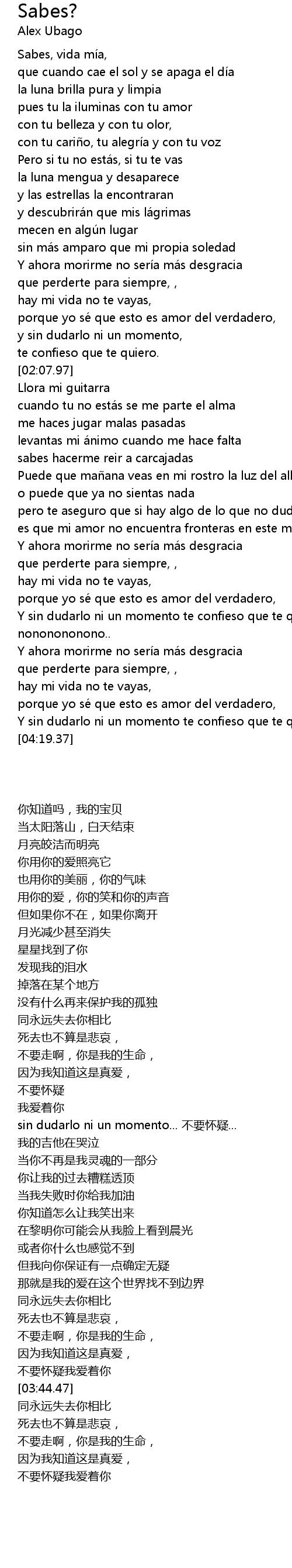 | [03:36.18] | Y sin dudarlo ni un momento te confieso que te quiero |