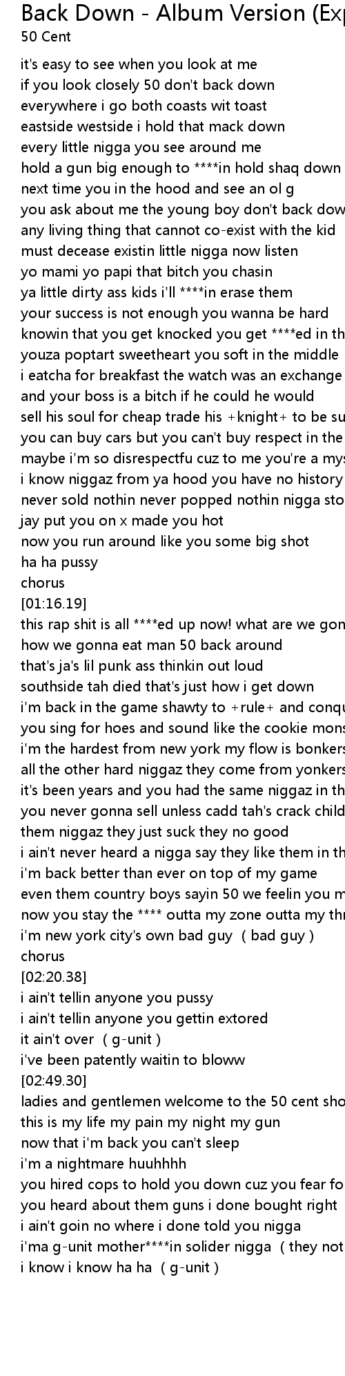 | 歌曲 | Back Down - Album Version (Explicit) |