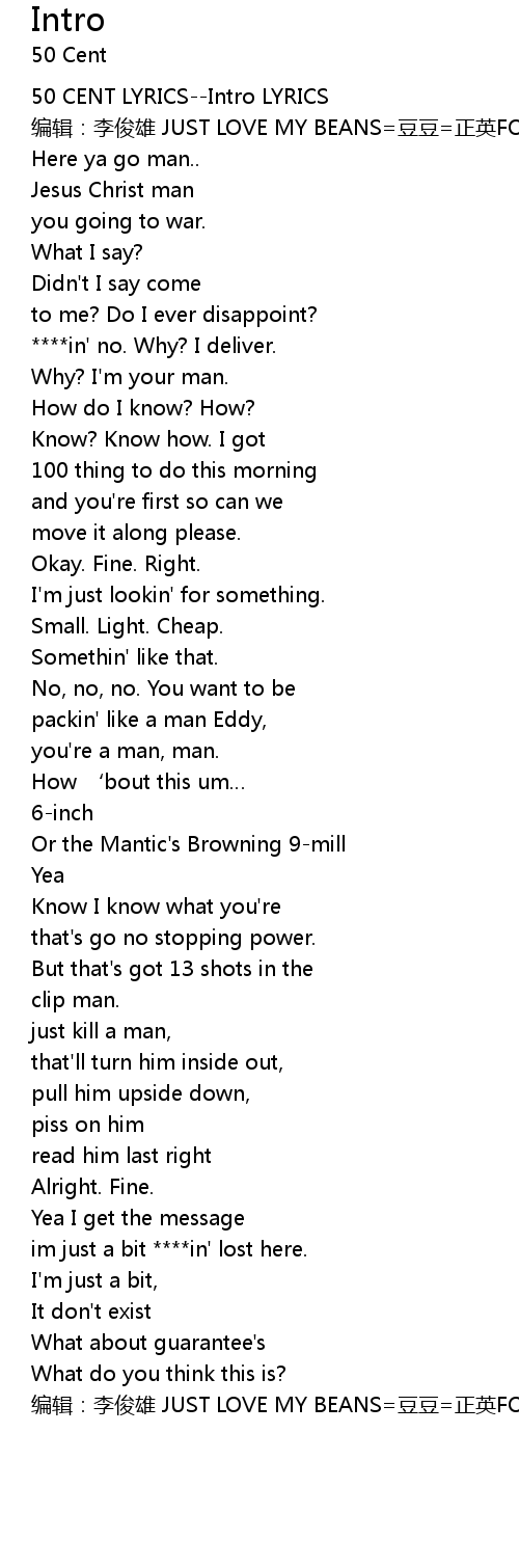 | [00:01.00] | 50 CENT LYRICSIntro LYRICS |