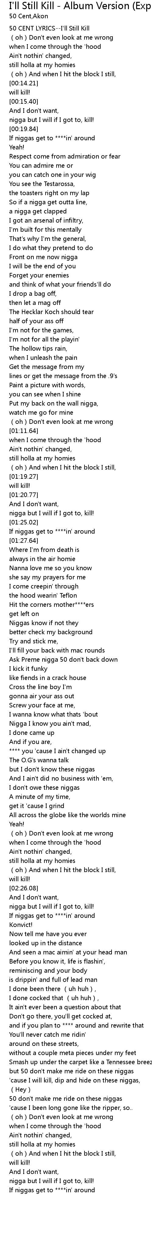 | [00:01.74] | 50 CENT LYRICS--I'll Still Kill |