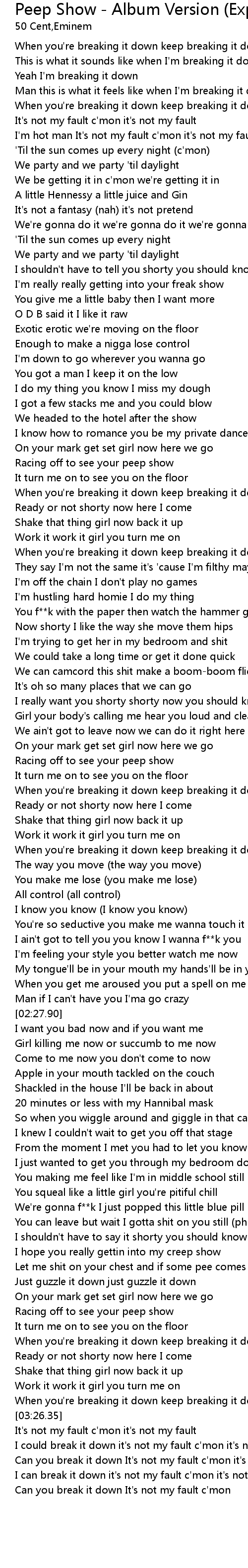 | [01:55.39] | When you're breaking it down keep breaking it down |