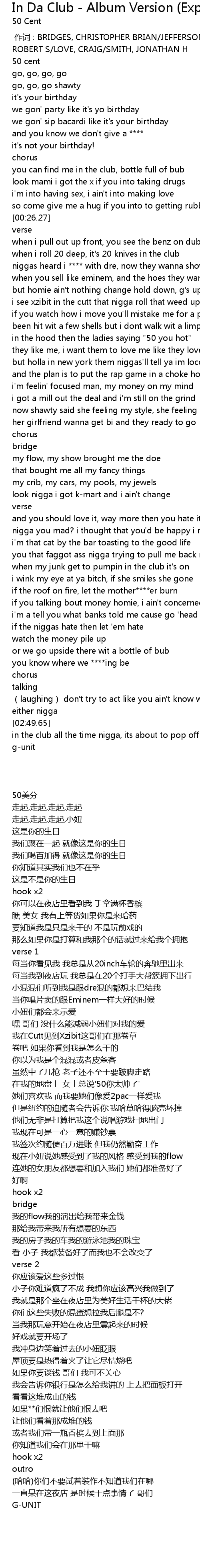 | 歌曲 | In Da Club - Album Version (Explicit) |