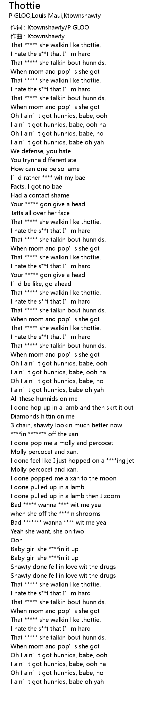 | [02:15.407] | Bad ******* wanna **** wit me yea |