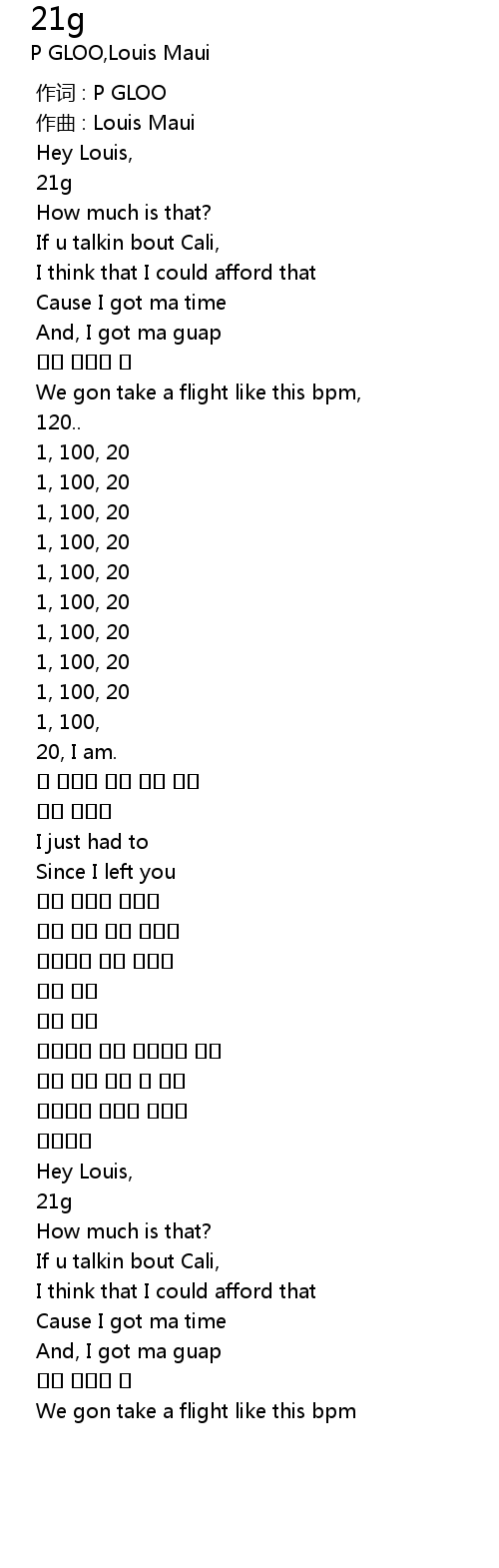 | [00:00.000] | 作词 : P GLOO |