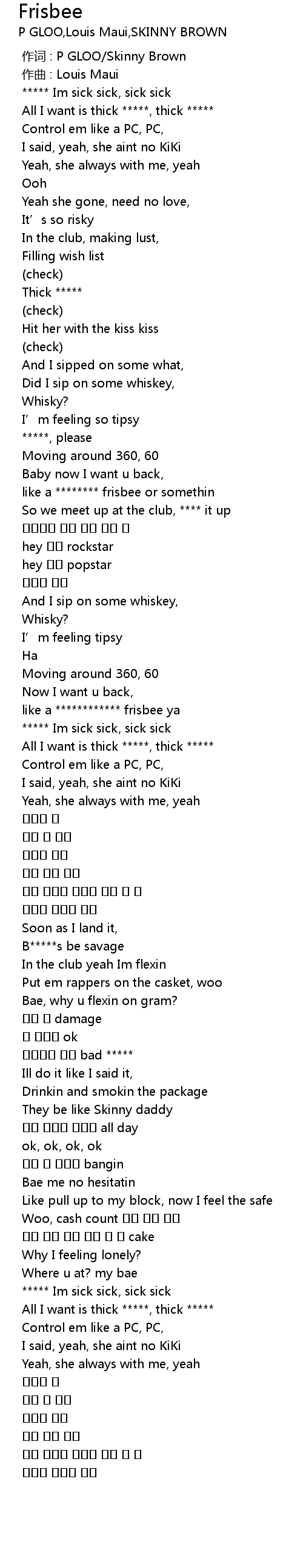 | 歌曲 | Frisbee |