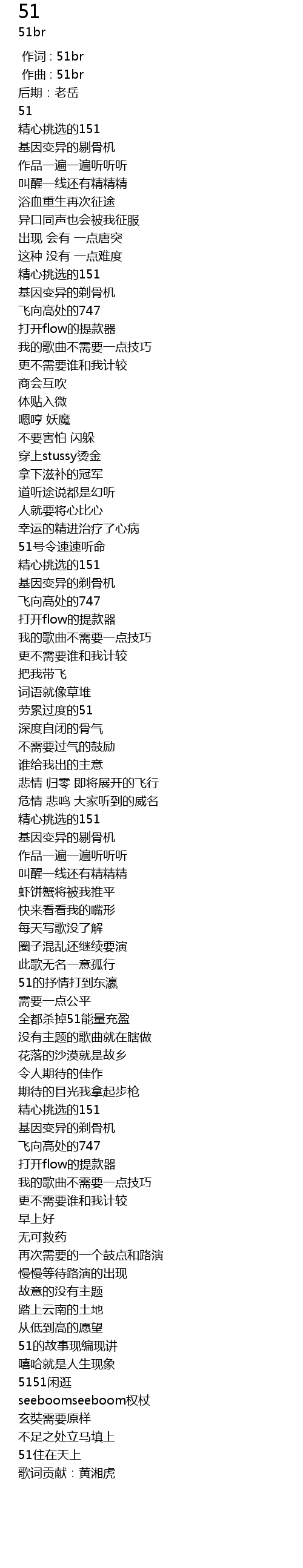| [00:00.000] | 作词 : 51br |