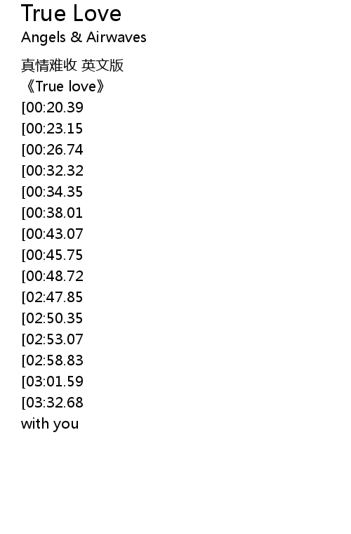 | [03:38.24][03:32.68][03:27.54][03:04.89][02:33.87][01:11.57] | my true love will be with you |