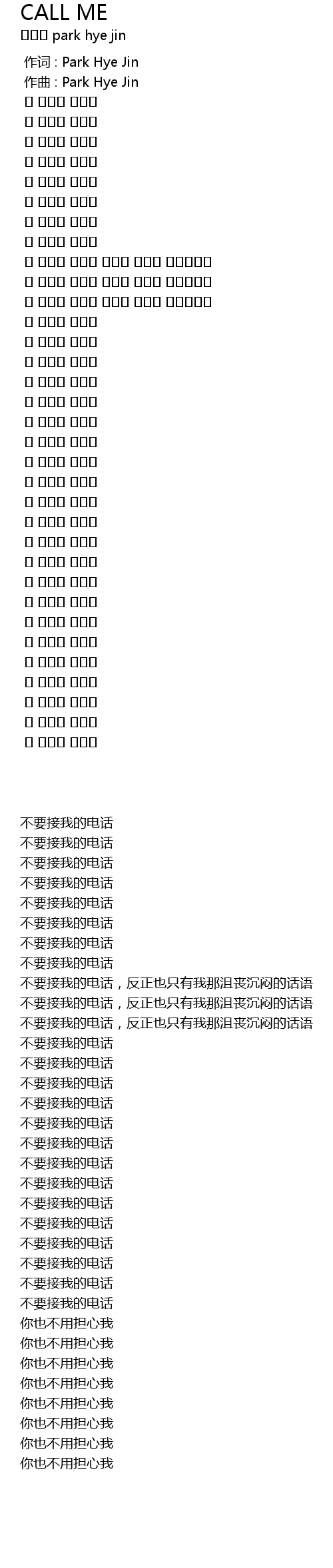 zuò qǔ : Park Hye Jin |