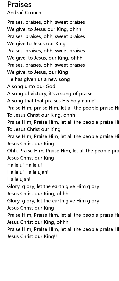 Praises, praises, ohh, sweet praises |