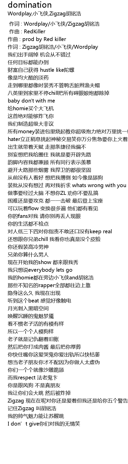 | [00:00.000] | 作词 : Wordplay/小飞侠/Zigzag胡铭浩 |