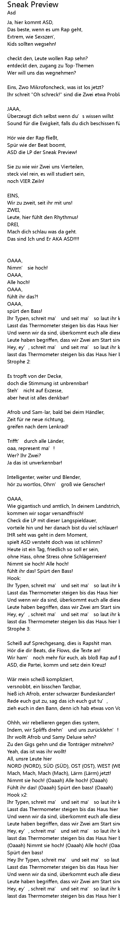 | Scheiß auf Sprechgesang, dies is Rapshit man. | |