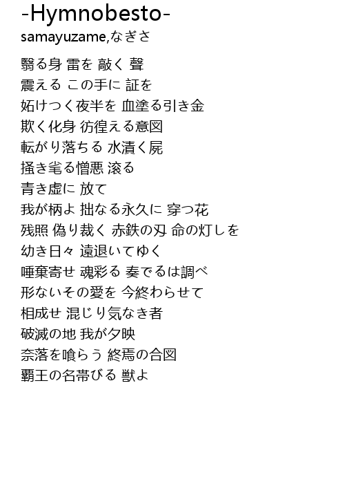 | [00:41] | 妬けつく夜半を 血塗る引き金 |