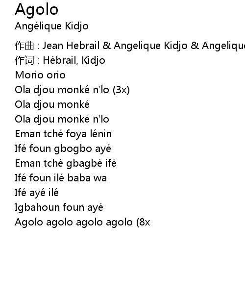 | 作曲 : Jean Hebrail & Angelique Kidjo & Angelique Kidjo | |