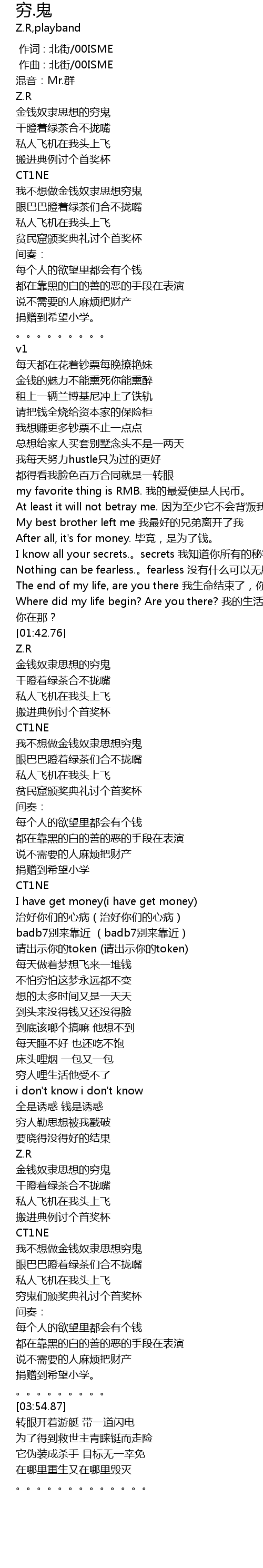 | [01:13.39] | 我想赚更多钞票不止一点点 |
