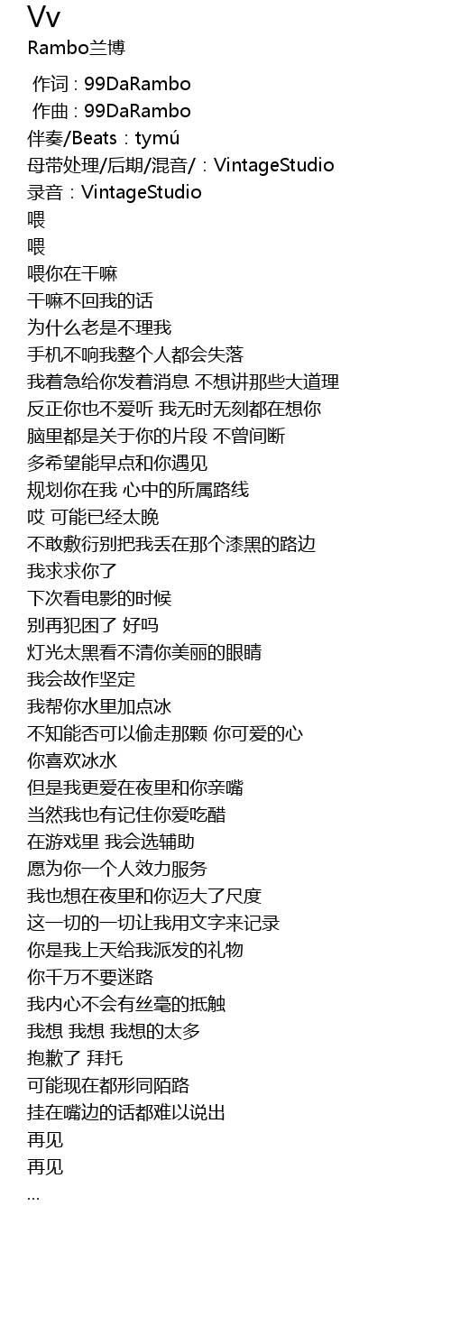 | [00:00.000] | 作词 : 99DaRambo |