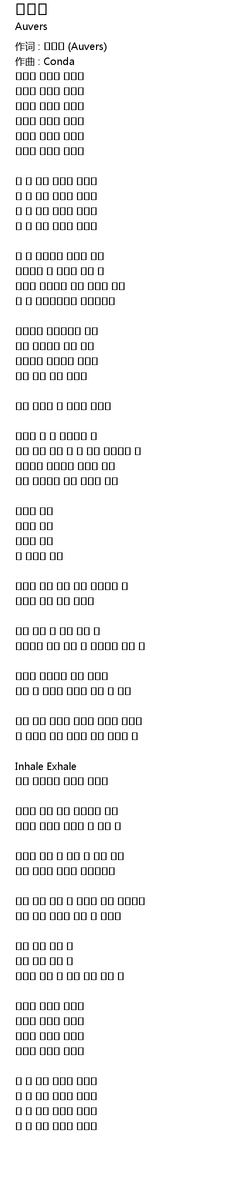 作词 : 오베르 (Auvers) |
